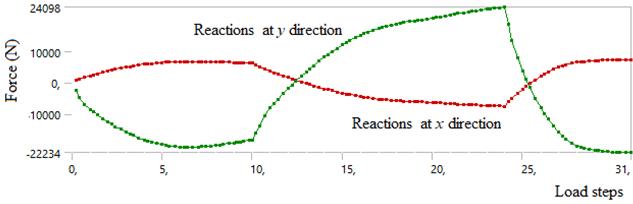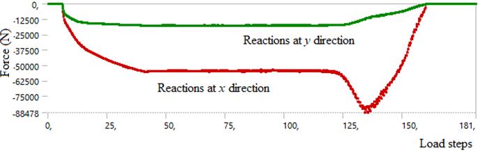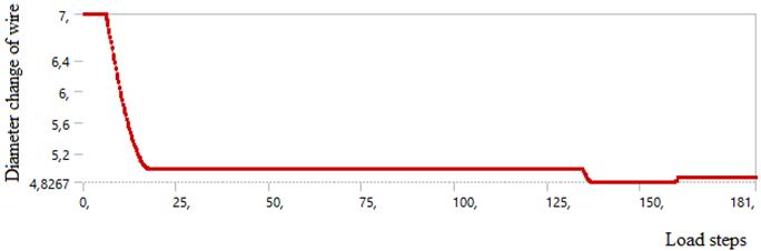 Figure 8. (a) Change in wire diameter during the process (mm) (b) Change in diameter according to load steps (c) Bearingreactions
