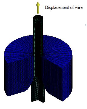 Infinite elementanalysis, anaxial symmetric 2D model is used instead of a 3D model to avoid time consuming calculations. The cylindrical coordinate system (x, �� , z) is locatedatthecenterofthewire.Theaxialsymmetryaxisof thefiniteelementmodelislocatedontheyaxis.Theradial directioncorrespondstothexdirection.AsshowninFigure 5,thesymmetricalmodelisplacedinthepositivexdirection consideringtheradialdimensions.