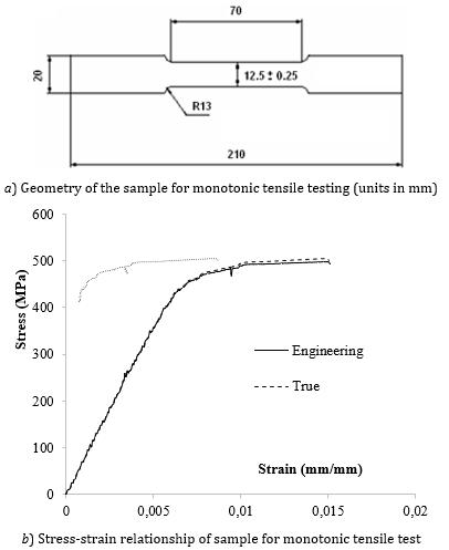 As shown in Figure 2a, monotonic stress and strain curve wereobtainedinthecoordinatesystemusingplatesamples preparedaccordingtotheASTME8standard.