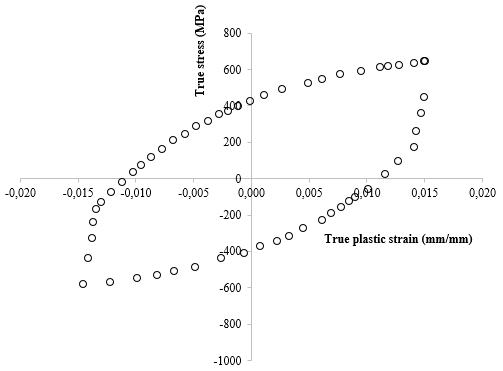 Figure 4. Truestresstrueplasticdeformationdiagram obtainedfromcyclicuniaxialtensiletestingforAA7075 T6atroomtemperature