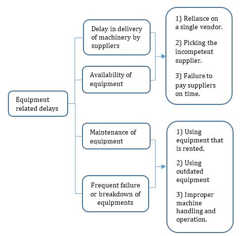 From Fig.3 it can be seen that three common root causes wereidentifiedforfactors(Delayindeliveryofmachineryby suppliersandAvailabilityofequipment)namely: