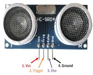HC SR 04 Ultrasonic Sensor: It is a sensor that helps to compute the distance through ultrasound when it travels intheair.Asoundwaveissentbythetransmitterandthis waveispickedupbytheobjectandisreflectedbacktothe sensor.This particular sensor operates by transmitting a sound wave work by sending a sound wave(Ultrasonic Sound).Theydeterminethedistancetoaobjectbyfinding the time lapse between the transmitted and received ultrasonic pulse. It requires a DC power supply of 5V and themeasuringangleis15degrees.