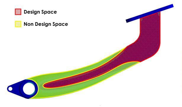Thevon Misesstressesandsafetyfactorobtainedfromtheanalysisareusedtomaptheregionwheretheoptimisationstudy canbecarriedoutinordertoremoveextramaterial.TheregionwheretheoptimisationstudyisneededisshowninFig*.The Redregiondefinesthedesignspacewheretheoptimisationstudyiscarriedout;thestressesinthisregion arelowwhich