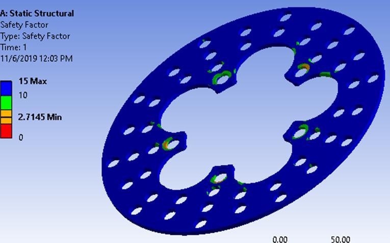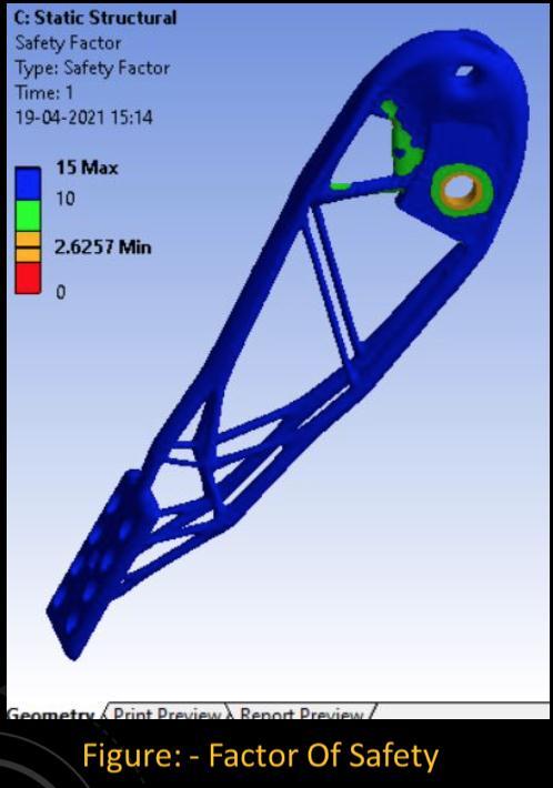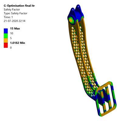 contributestohighsafetyfactorwhichinturnmeansthatthereisexcessmaterialavailableinthisregion.Theyellowregion enclosesthespacewherehighstressesarebeinggeneratedthusnooptimisationstudyisrequiredinthisregion.