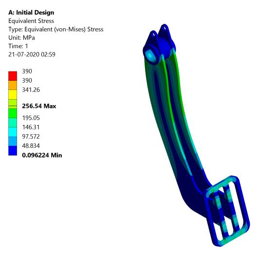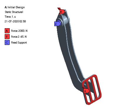 TheinitialCADmodelofthebrakepedalhasbeencreatedinPTCCreoParametric5.0.Itconsistsofmountingpointsforitself and2mastercylinders.Thedesignprocesseswerestartedwithdefiningandevaluatingallthedesignconstraints.Themodeof manufacturingforthisbrakepedalisweldingoflasercutparts.Thegeometryalsoincludesfilletsof4mmaroundthefootrest andpivotregiontorepresentweldbead.InitialCADmodelofthebrakepedalis
