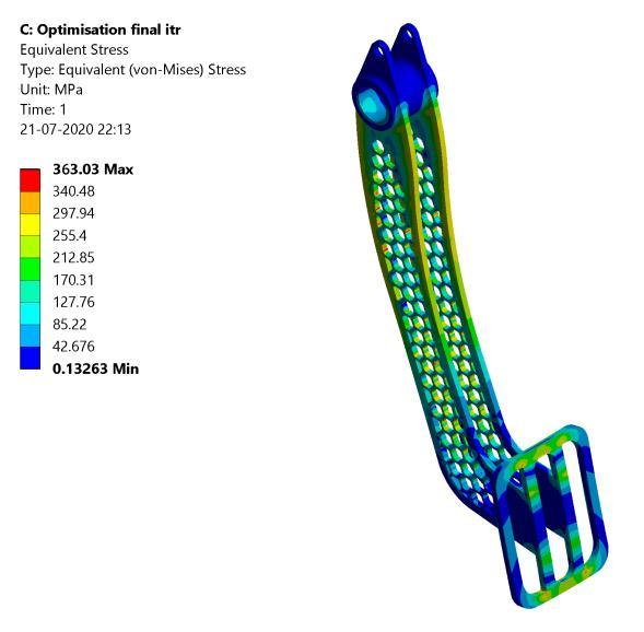 Thesecondpartofthisresearchincludestheoptimisationofbrakepedaltominimisetheweightofthecomponentandto remove extra material.Theinspirationforoptimisationwasdrawnfroma honeycombstructure.Ahoneycomb structure providesrigidityandefficientstressdistributionalongwithminimalweight.