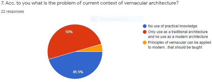 Most of the issue of current context of vernacular architectureisthatthereisnouseofpracticalknowledgein thecourseandnouseofcontemporaryarchitectureinthe syllabusonlytraditionalarchitectureuseisthere