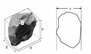 Aspect Ratio (Length to thickness ratio) is defined as the maximum length(m) divided by the minimum distance, d (m), between parallel lines through which the particle would just pass. This form description is the industry standard now embodiedinEN13383forbotharmourstoneandaggregates.