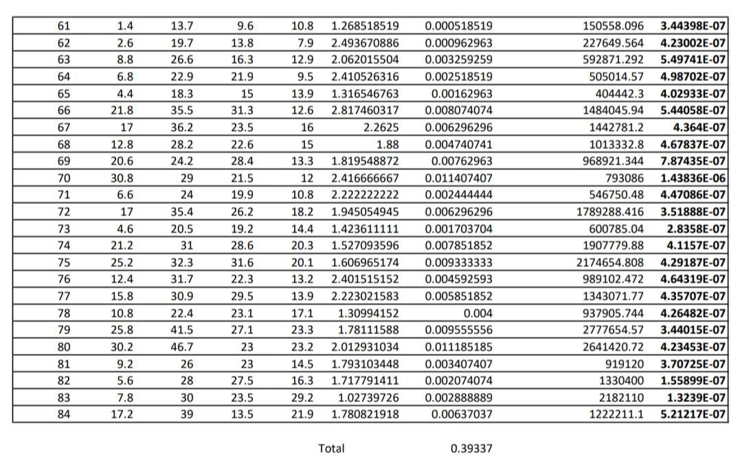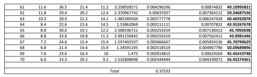 Using the obtained data’s we were able to calculate the volume of the frustum section. One by one each stone from the embankmentweretakenouttomeasureit’sweightanddimensions(length,bredth,depth). Thesereadingswerenoteddown. Usingthesereadingswecalculatedtheaspectratio(AspectRatio=(L/D) andblockiness (BL=[Vstone/Vcubical]x100)ofeach stone