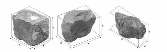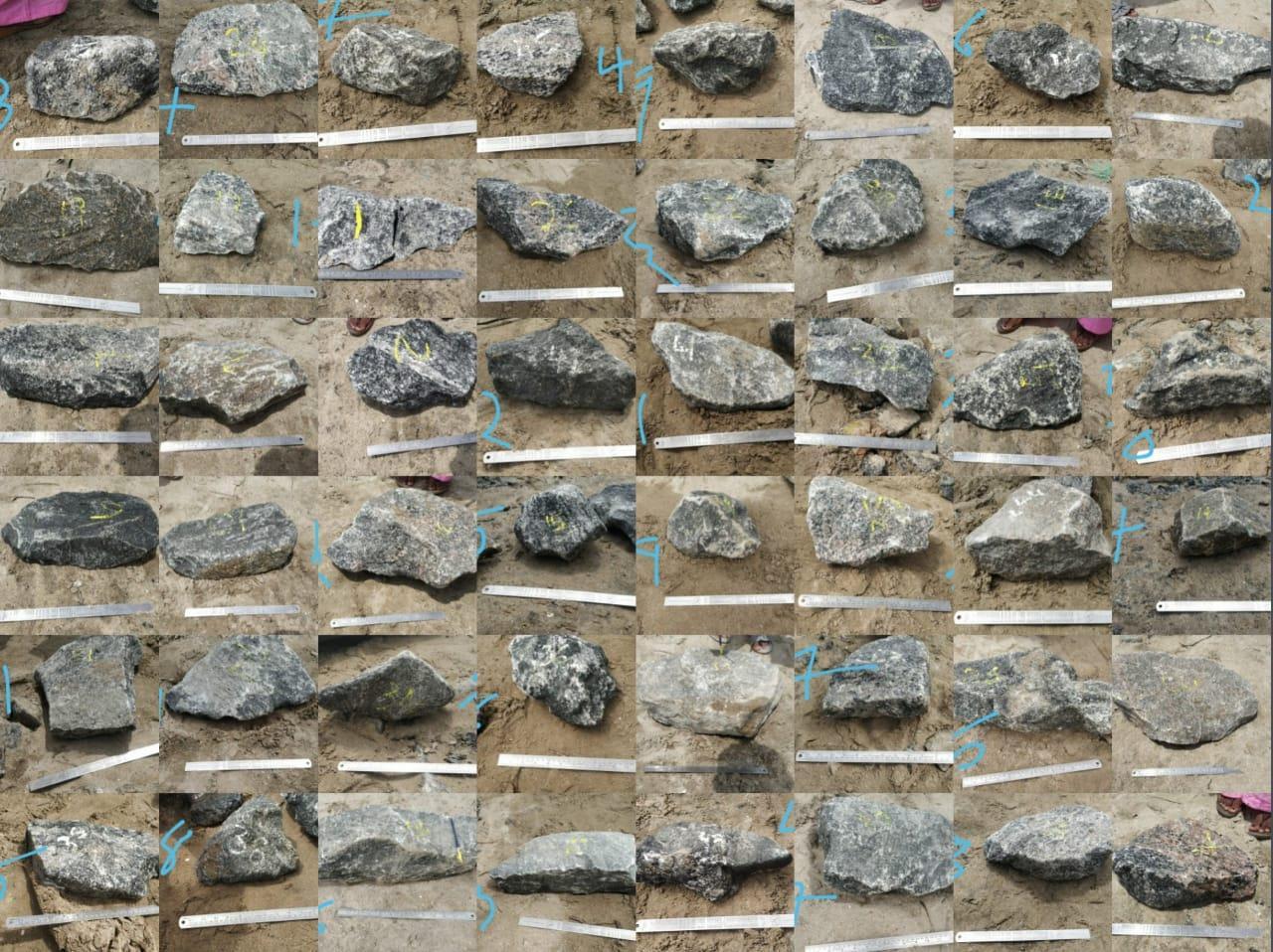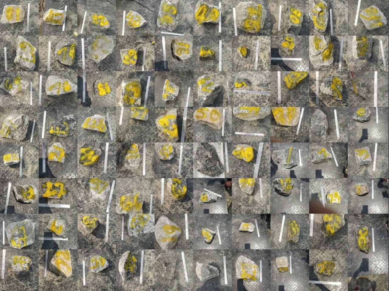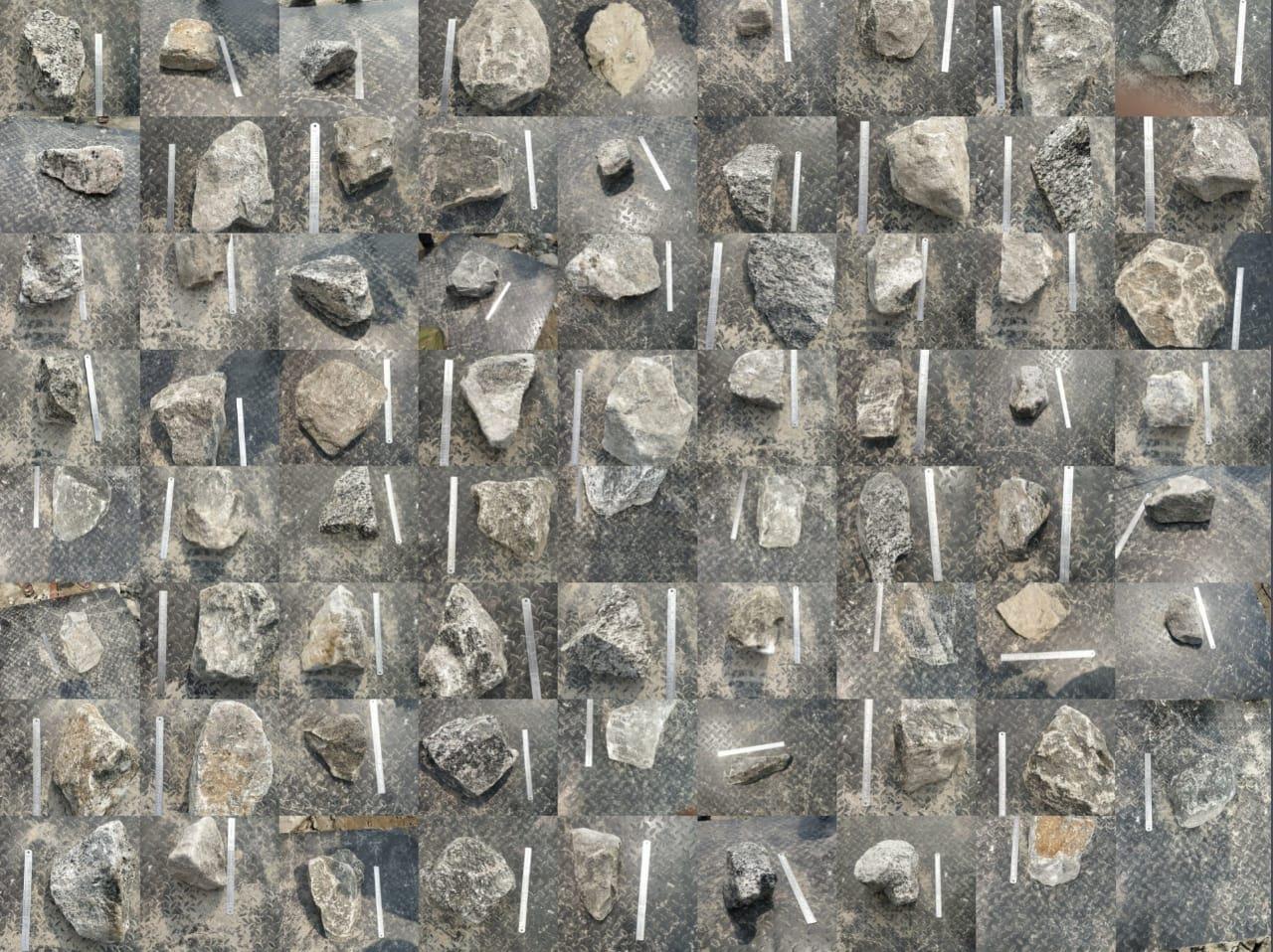 We collected 70 samples of armour stone for this experiment. 70 stones were randomly taken and had different shapes and sizes.Usingthesestonesweconstructedafrustumembankmentbydroppingeachstones.