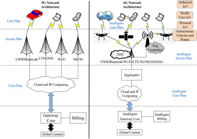 Fig 2: 5GArchitecturevs6GArchitecture