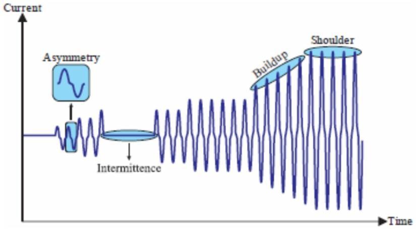 E Build up and shoulder [35] where the current magnitude of an HIF gradually increases during several cycles until it reaches a steady state condition.