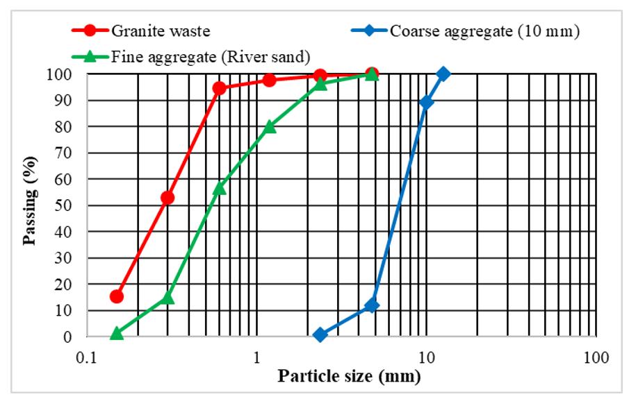 Chart 1:Sieveanalysisofaggregatesandgranitewaste