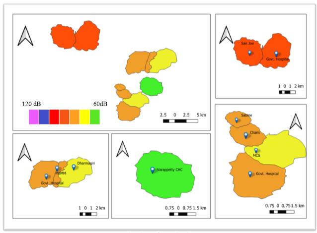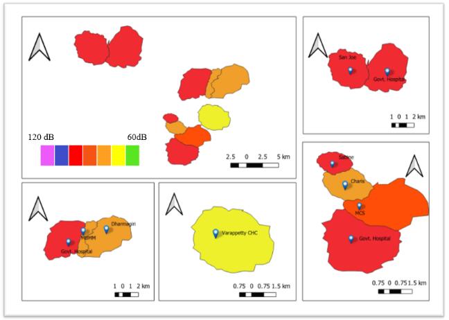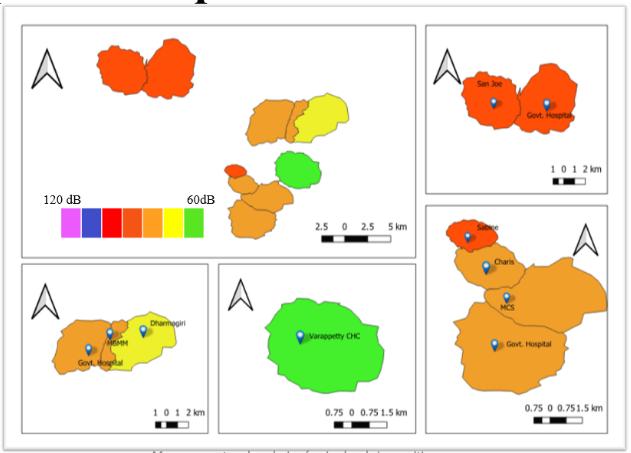 Abstract Nowadays, due to the particular characteristics of hospitals, the hospital buildings are highly sensitive to environmental noise. In our comprehensive one month research project, traffic and community noise levels were measuredand monitoredat tensensitive areas ie;hospitals in its spatial temporal aspects, at the city of Ernakulam. Noise measurements were taken at different peak sessions from morning to evening. The project presents an analogy of obtained noise readings with the national CPCBstandards for silent zones. The main objective of our project is to aware the public about the noisy environment with which we livestoday, due to the increased traffic intensity. Using QGIS software, noise maps are generated to make the awareness more precisely. Hospitals are exposed to high volumes of environmental noise. Major source of noise pollution is from vehicles. It has detrimental effects onhumanhealth.Increased inpopulationincreases the trafficthatcausingnoisepollution.