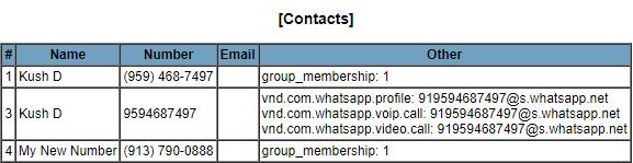 Output : WhatsAppcontactsdata WhatsAppmessagedata