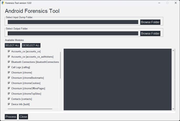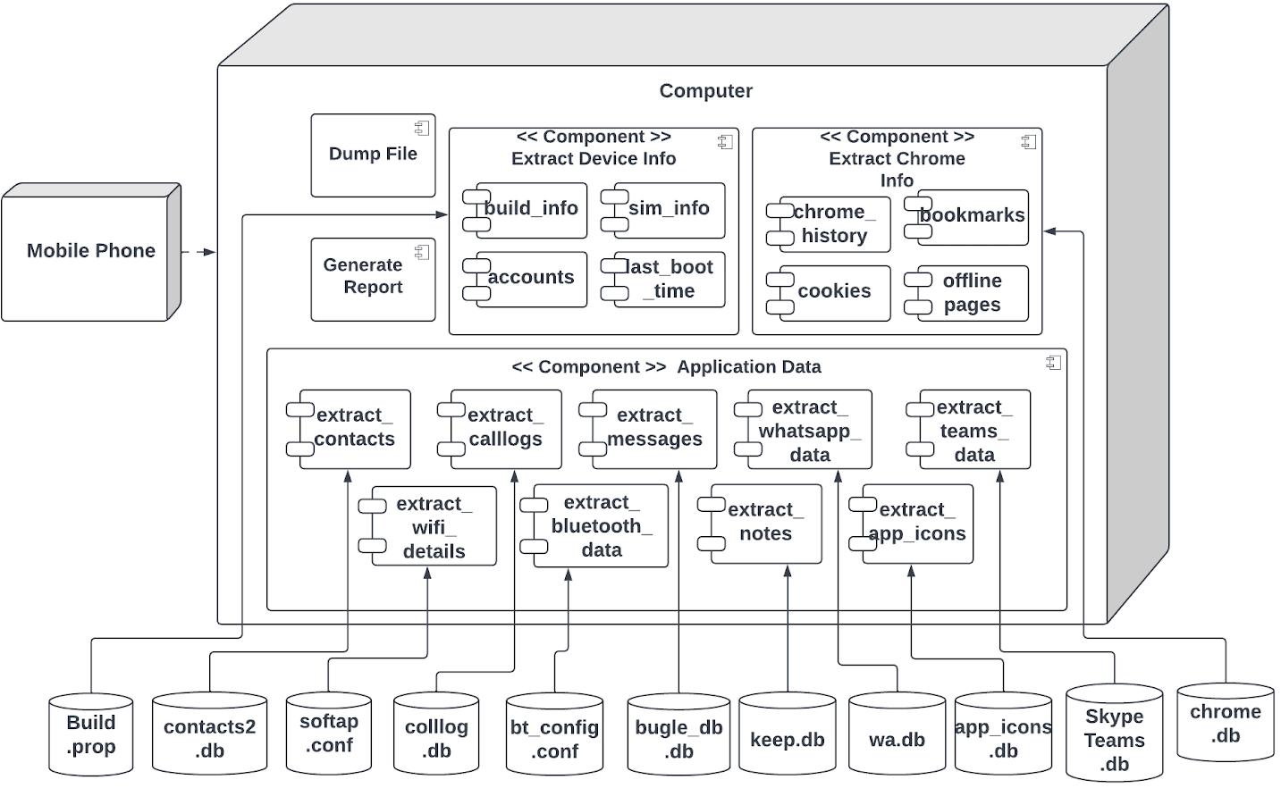 TheproposedAndroidforensictoolshouldperform nondestructiveacquisitionfromrootedAndroiddevices. It isaGUIbasedtoolbasedonpythonlanguageandlibraries.It isproposedtoproduceresultsinthewebpages.Thedump filethatcontainstheentirefilesystemoftheandroiddevice hastobecreatedpriortothedataextractionandanalysis. TheGUIofthetoolexpectsaninputpathtothedumpfolder andanoutputpathforthestorageofgenerateddatareports. Further,theuserhastoselecttheartifactsfor whichdata should be processed allowing the user to customize the reportasperneed.Sincethedataisalreadyextractedinthe dumpfolder,theexecutionofthetoolisfastandthereport should be generated without much delay. The risky or potentiallyattackdataissegregatedfromthenormallegit