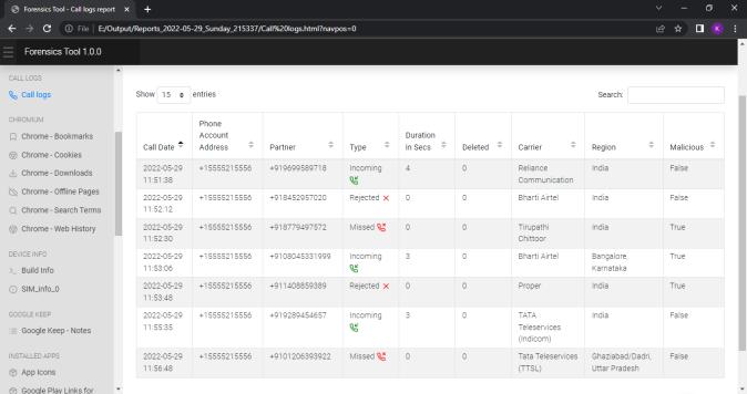 mobile data and classified accordingly by the tool. The results are finally displayed in interactive, well formatted reports with a usable interface that can be viewed on any webbrowser.