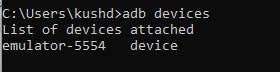 Step 2: Check the connected Android devices to the computer by running the following adb command in the commandprompt adb devices
