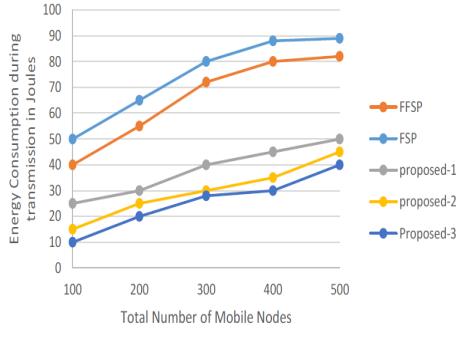 methoddemonstratestohaveasignificantamountofenergy savingsduetostableconnection established, avoidingthe circumstances of the rerouting protocol and links failure, even though all three methods have a limited energy consumptionduetotheestablishmentoftheshortestpath fromthesourcetothedestination.Thesimulation'sfindings onhowmuchenergyisusedbythesuggestedapproachand thestandardmethodastheytransmitpacketsfromsourceto destination. Due to the establishment of the shortest path fromthesourcetothedestination,allthreeapproacheshave arestrictedenergyusage.theproposedsolutionavoidsthe circumstances of the rerouting protocol and connections failure and demonstrates a significant amount of energy savingsthankstothestableconnectionformed.