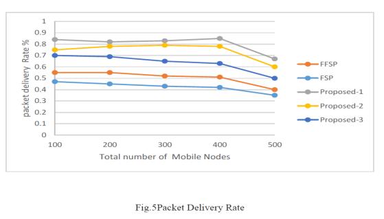 Thesimulationresultsaboveillustratetherateofpackets sent using the suggested strategy and the conventional method.Usingreinforcementlearningtobuildaconsistent shortrouteresultsina35%improvementinpacketdelivery. whichhastheeffectofcomparingtheproposedmethodto theopacity(FSP)basedshortcutand28%methodcompared tothestandard.