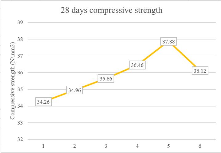 Chart 2: Variation of compressive strength on concrete after 28 days