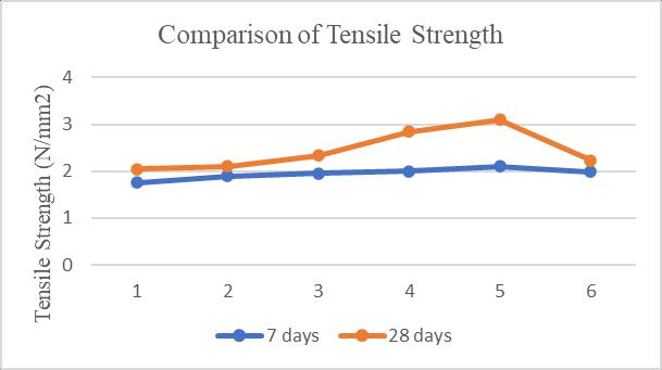 Chart 5: Comparison of split tensile strength of concrete at 7 and 28 days