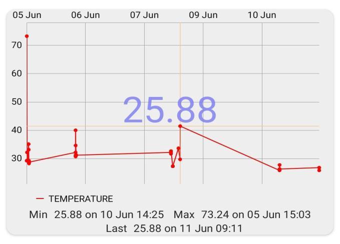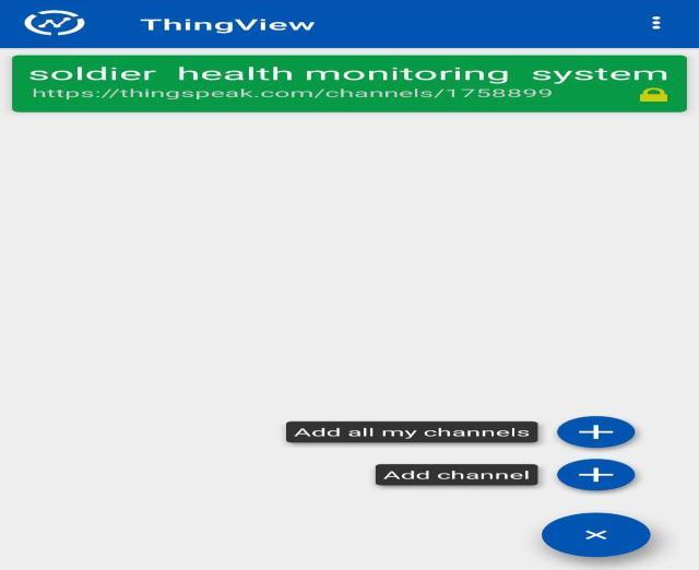 Using a ThingView app we can see the parameters like, temperatureandpulserateofthewoundedsoldiersothat immediateactionwillbetakenbythebasestation.TheApp displayisgivenbelowsoweaddamultiplechannelto it. Thevariationarelikeintheformofgraphs.