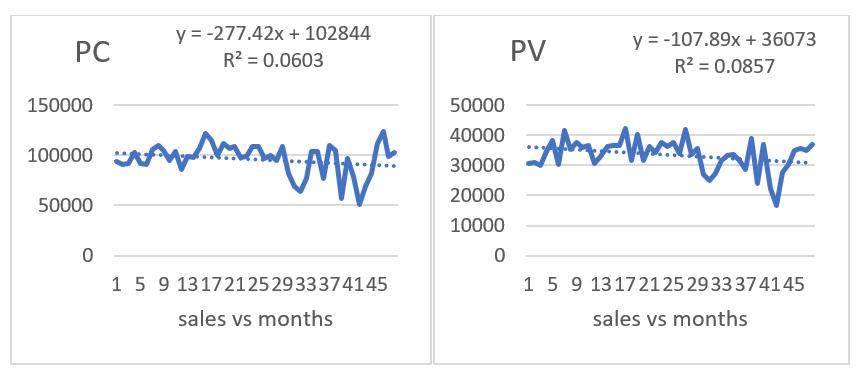 passenger vehicles. Top Level of the hierarchies is total domesticsaleofthecompany.Weplotcharts,ACF,PACFfor each node in product hierarchy using MS Excel, SPSS Software and go for detailed analysis of data of different products, product groups and product categories. After plotting the graph, we understand the trend and characteristicsofeachseriesoftheproductHierarchy