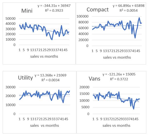 Over6yearsofmonthlysalesdataofdifferentproductdata werecollected.Collecteddataincludedomesticsalesofthe company.Datawereanalyzedandstudythecharacteristicsof dataoffourdifferentproducts(Mini,Compact,Utility,Vans) whichincludedinbaselevelofhierarchy,Productsgroups (Passenger cars and Passenger vehicle) which included in MiddlelevelandtotaldomesticsalesinToplevel.Collected datadividedintotrainingandtestsets.Three yearmonthly salesdatasetasatrainingdatausedforsettingandfinding parametersforthespecificdata.One yearmonthlydataset asatestdata,whichisusedforcomparisonandtesting.Data were analyzed and found the components included in the data like trends, seasonal, irregularity, cyclical. Regression equation and trendline of the data were determined. we applythedifferentforecastingapproachtorealworldsales datacompany.Wethenintroducethecompanyandexplain our study in which we compare the performance of the differentapproachesandtechniquesinproductHierarchical forecastingforthecompanydata.