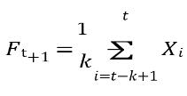 (i) Moving average: Movingaverageisoneofthesimplest forecastingtechniqueswhichforecaststhefuturevalueofa timeseriesdatausingaverage(orweightedaverage)ofthe past ‘N’ observations. Mathematically, a simple moving averageiscalculatedusingtheformula.Thepointforecasts are calculated as an unweighted average of the last k observations,asfollows:
