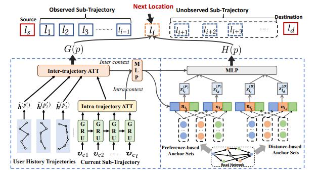 Utilize RNNs to model such sequential behaviors. Given an observed subtrajectory p : ls → l1 · · · → li generated by u, we employ the widely used GRU network toencodeitintoavector