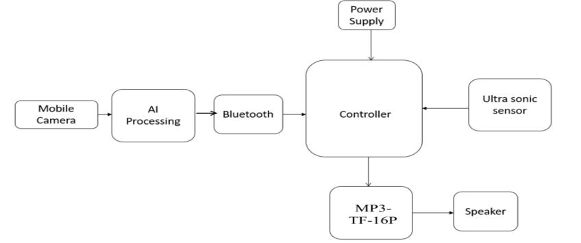 an audio device connected to the module. The system continually operates so that the visually disabled can get updates on the challenges at any point on the way. Consequently,withtheaidofourproject,blindpeoplecould performtheirdailytaskscomfortablywithoutanytrouble.