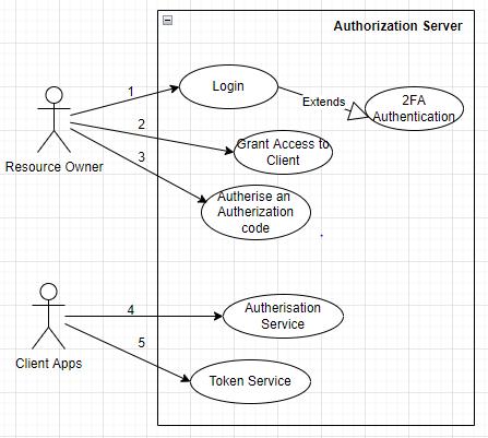 The Identity Provider in the OAuth2 process is the AuthorizationServer.Thedesignprovidesthefundamental use scenarios for the Authorization Server, as shown in Figure 4. The following two actors communicate with the AuthorizationServer: