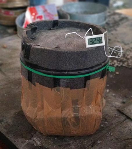 Experimental setup for measuring specific heat of mortar cubes