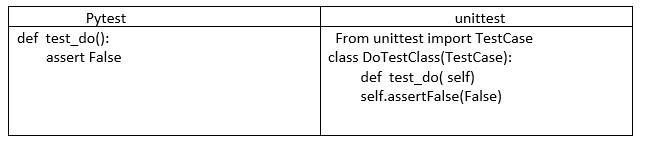 When compared to unittest, Pytest has many inbuilt capabilitiesthatneedlesscode.Forunittest,wefirstneedto importamodule,thenweneedtomakeaclass,andlastwe needtospecifytestingfunctionsinsidetheclass.However,in thecaseofPytest,wemustspecifythefunctionsandmake thecriteriaincludedwithinthemexplicit.Overall,theformat of unittest use cases is difficult, there is no compatibility, therearefewplug ins,andsecondarydevelopmentiseasy. Theusecaseformatisstraightforward,andPytestismore practicalandquicker.Itoffersstrongcompatibilityandcan run unittest style test cases without altering their source code.Pytestplug insaremanyandincludetheflashplug in, whichcanbeusedtoreruntestsintheeventofanerror,and thexdistplug in,whichallowsformoreproductiveparallel deviceexecution.