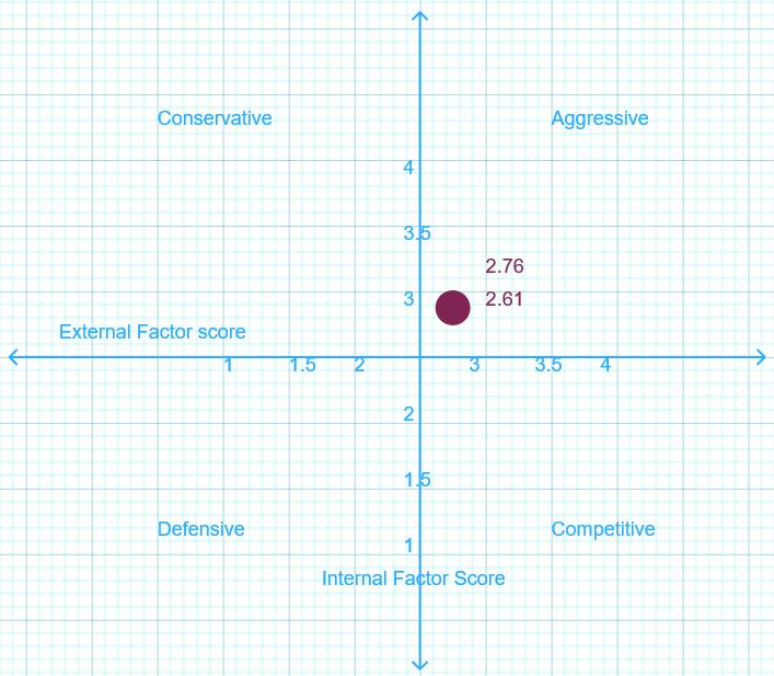 Based on IFAS total score of strength factor gain is 1.81 whereastotalscoreofweaknessfactoris0.95.Thisshows thatthestrengthfactorisgreaterthantheweaknessfactor andbasedonEFAStotalscoreofopportunityis1.55,total score threat is 1.06. This indicates that the opportunity is greater than the threat. Factors of strength and opportunities can support the business. Drawing a SWOT diagram shows an affirmation of the position of the company. Fig 2:SOWTDiagram