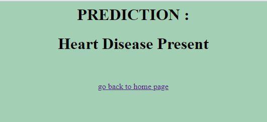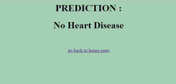 Theabovefigureshowstheoutputpage.Onceusergivestheinputandselecttopredict,itthenredirectstotheresultpageand afterprocessingitgivestheresultwhetherheartdiseaseispresentornot.Thepagealsocontainstheoption“gobacktohomepage” whichtakestheusertohomepage. © 2022, IRJET | Impact Factor value: 7.529 | ISO 9001:2008 Certified Journal |