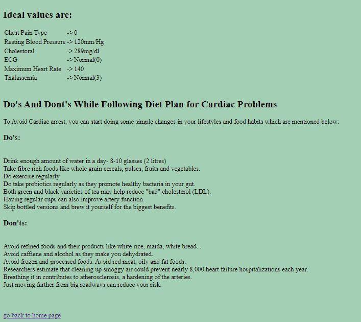 Theabovefigureisdirectedfromtheresultspagetodietplanpage.Basedontheresultsoftheuserandhow riskythe diseaseisthesystemprovidesadietplantotheusertomaintainhealthconditions.Byfollowingthedietplanusercanbringhis healthconditionsfromseveretonormal.