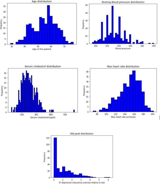 Restingbloodpressure Trestbps Bloodpressure 5 Serumcholesterol Chol MinimumCholesterol:126 MaximumCholesterol:564 6 Fastingbloodsugar Fbs 0=false 1=true 7 Restelectrocardiograph Restecg 0=normal 1=abnormalityofST 2=leftventricularhypertrophy 8 MaxHeartrate Thalach Maximumheartrateachieved 9 Exercise inducedangina Exang 0=no 1=yes 10 STdepression Oldpeak Exerciseinducedangina 0=no 1=yes 11 Slope Slope Slopeofpeakexercise 1=unsloping 2=flat 3=downsloping 12 Noofvessels Ca Major vessels colored (0 3) by fluoroscopy 13 Thalassemia Thal 3=normal 6=fixeddefect 7=reversibledefect