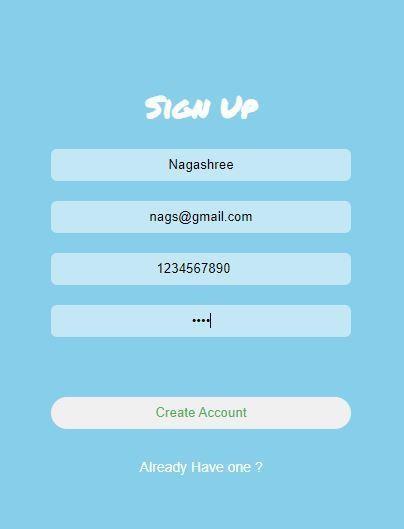 Theabovefigureshowsthesign uppage.Iftheuserisvisitingthewebsiteforthefirsttime,thentheusershouldregisterto thesitebyprovidingthepersonalinformationaskedintheform.TheuserafterfillingthedetailsshouldclickonCreateAccount button.Iftheuserisalreadyregistered,thenthealertisshownthattheuserisalreadyregistered.Iftheuserisregistered,then alreadyhaveone?Optionisclicked.Thebuttontakestheusertologinpage.