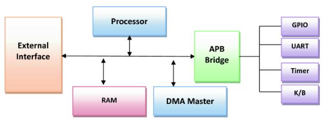 The above figure shows how different bus protocols can communicate with the SoC or processor using AHB APB busorAMBAbridge.