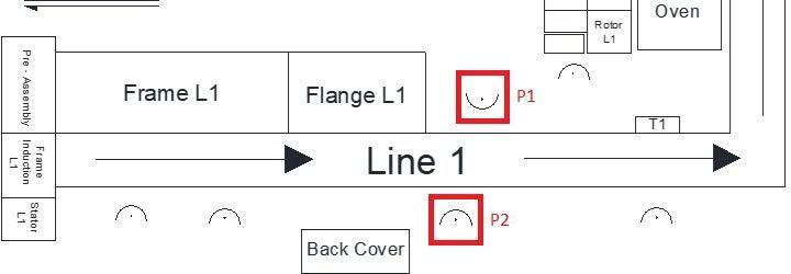 The following operations will be carried out as scheduled belowtoindividualperson[i.e.,ForPerson1(P1)andPerson 2 (P2) as indicated by red coloured box]. For person, the followingoperationswillbecarriedout.P1 Operation(15, 18, 21), P2 Operation (16, 22). For the understanding purpose, we assume that the operation number 15 (i.e., Ensureandcorrectpositionofferrules)isalreadyfinishedfor onemotor.Now,thismotorwillproceedtotheperson(P1 andP2)intheinductionassemblyline.