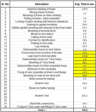 Hence,thetotaltimesavedpermotorwillbe100seconds. The existing time taken is 745.2 seconds as seen in below table