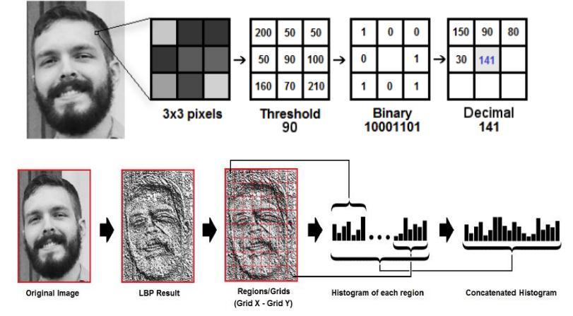 Using LBP combined by histograms we correspond the facialpictureswithadatavector.