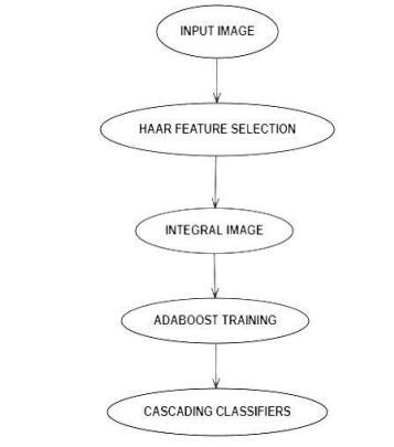 facial detection using which system analyses whether a picture has a face or not. The picture is segmented by reducing down the area of interest. The attribute is a single value that is computed by the subtraction of pixels underthe whiteand black regions.Thisdata issavedin a file known as haar cascade which is normally an XML format file. Amorework is required to train the classifier systemandproducethecascadefile.Giveninthediagram below:
