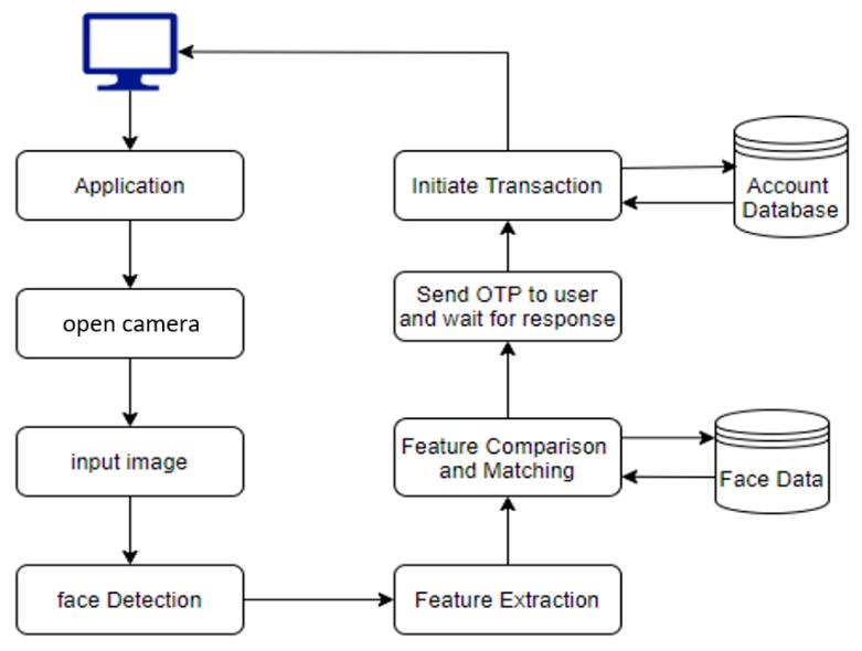 Key Words: OTP, LBPH, HAAR CASCADE(Misra & Dev, October 2020) In recent years, the security has become a vital and rigorous service to secure possessionsandprovidedataprivacy.Henceexistneedfor more reliable security system that has to be developed in order to avoid loss due to identity theft. Paving the way too many researchers to invent new answers for improvising security systems, especially in human identification. The conventional method of transaction is unreliable since it can be copied / manipulated and even stolen. Apart from these, conventional security methods like keys and payment cards can be lost or misplaced. Thus, a more simple and effective transaction system needs to be developed to avoid greater loss. Biometric based method is implemented for transaction, as a higher degree for security. (Mutteneni, Kasireddy, & Achanta, ISSN: 2277 3878, Volume 8 Issue 6, March 2020) Human faceisunique,itcannotbemanipulatedbyanymeans.The techniques used with facial recognition are very efficient thanother.Thefaceisaprimaryfocusinourlifethatplays a vital role in connecting identity and even emotions, System that recognize and identify face can be applied to various applications that include online transactions, security systems and criminal identification. Face recognition and detection is difficult as these algorithms