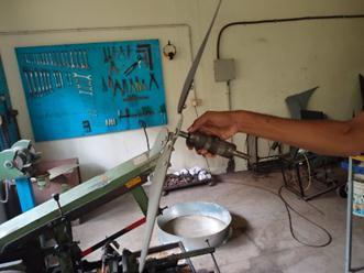 Thefabricationworkbeganwiththeproductionoftwotype ofblades;5 bladeand3 blade,madeofPVC.Thentheywere bolted onto a bearing housing made of cylinder pipe of diameter50mmandabearingof internaldiameter16mm (SKF6202)wasfixedintothecylindricalpipe,asshownin fig1.