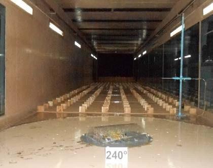 The wind tunnel has two turn tables,oneonthe upstreamsideandanotheronthedownstreamside ofthetestsection,whichcanrotateat360 azimuth direction to achieve different angles of windincidence.