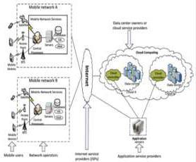 ThegeneralarchitectureofMobileCloudComputingcan be seen in Figure 1. The core architecture of MCC is includes the components: internet service providers, mobile users, cloud service providers, mobile operators, respectively