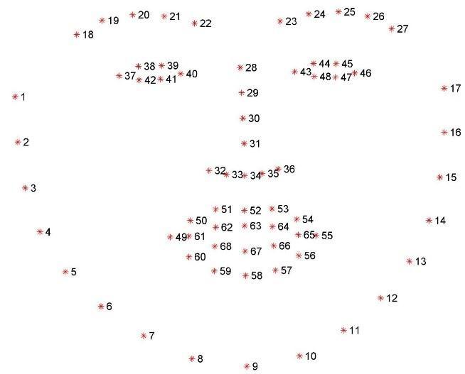 ThefaciallandmarkshownintheFig 8isusedtodetect thefaceregionandlatertoextracttheeyeregion.
